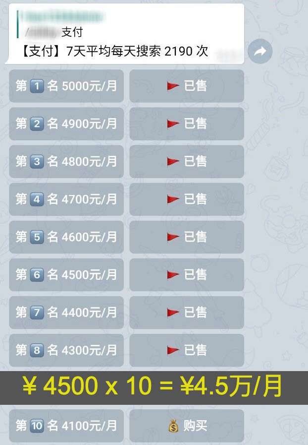 只要前期搭建好了系统,拉拢到了足够多的用户数量,后面卖关键词广告甚至都不需要人工参与。每个词不多,只要创造每月 ¥1万 的收益,100个关键词呢? 1000个词呢?