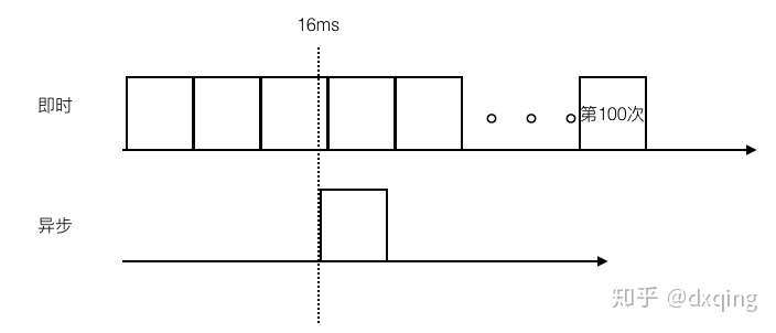 鼠标在画布上移动时,不断的导致重绘,我们只要能够保证 60 帧的重绘频率即可,所以重绘的间隔不能小于 16ms,我们可以将持续渲染的同步机制,改成每 16 ms 渲染的异步延迟渲染机制,这样可以大大降低重绘的频率。