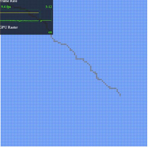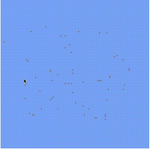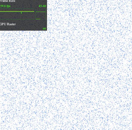 - 这是一个 10W 个点渲染(局部 画布 1000 * 1000,这里仅显示了500* 500 的范围)的效果,可以保证近乎 60帧的效果