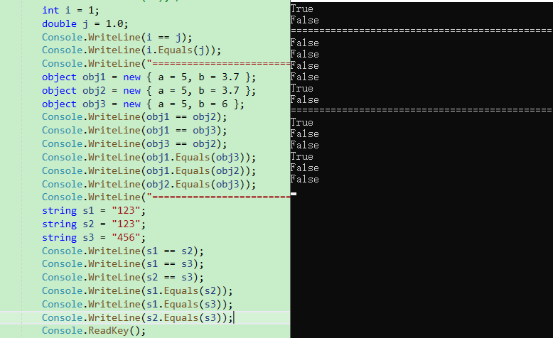(1) Equals比较两个对象时必须保证两个对象的类型一致比较其值相同返回True不相同返回false