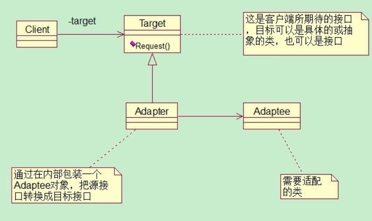 ③想使用一个已经存在的子类,但是不可能对每一个都进行子类化以匹配它们的接口。对象适配器可以适配它的父类接口。