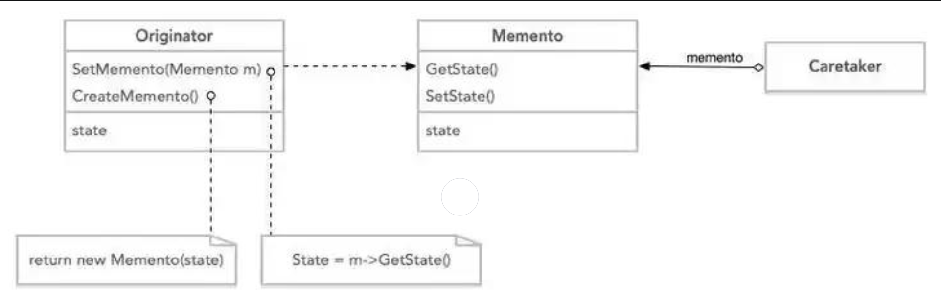 在不破坏封装性的前提下捕获一个对象的内部状态,并在对象之外保存这个状态。这样以后就可以将对象恢复到原先保存的状态。