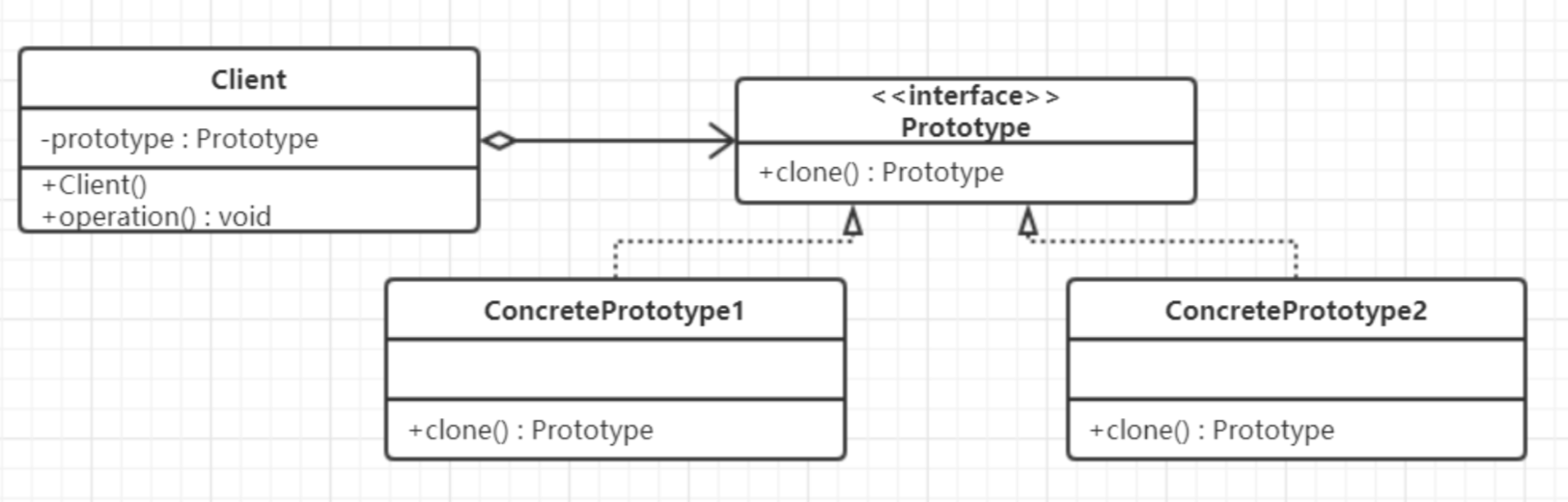 1 /// <summary> 2 /// 声明一个克隆接口,提供克隆方法,由具体子类实现 3 /// </summary> 4 internal interface IPrototype 5 { 6 IPrototype Clone(); 7 }