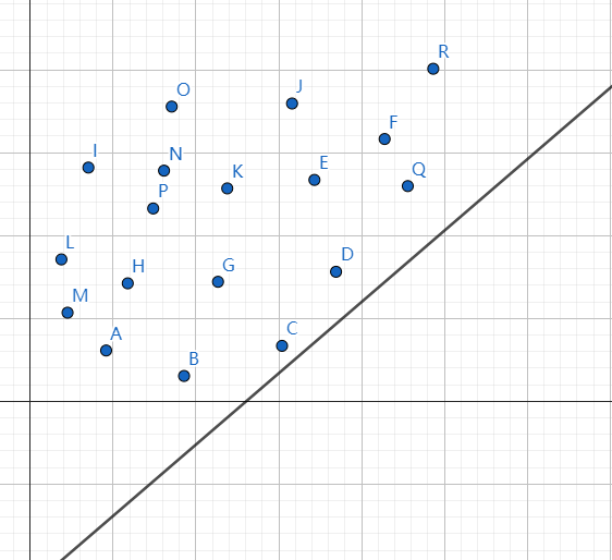 我们只需找到依次过所有点的直线中,截距最小的,即可求得 \(F(i)\)。