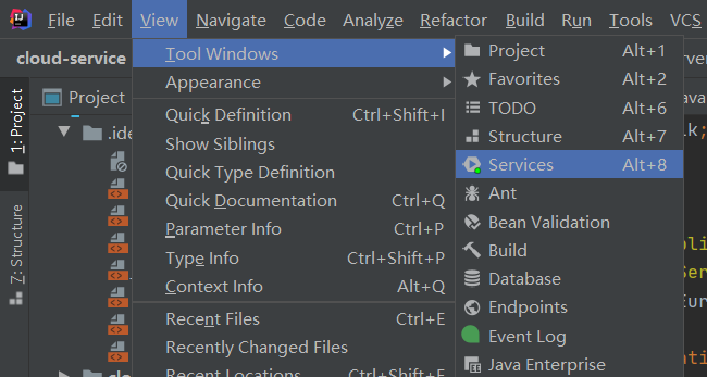1. 打开 Services 窗口(View => Tool Windows => Services)