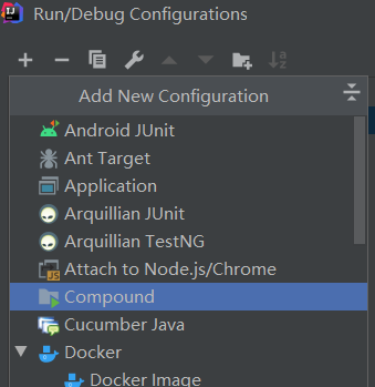 1. 首先修改运行配置(Run => Edit Configurations),在运行配置中点击 + 号添加新的配置,选择 Compound