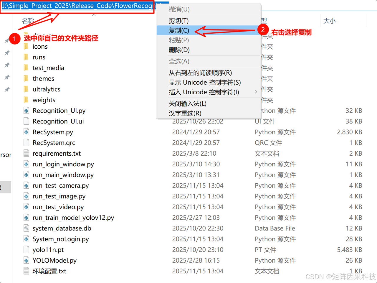 - 在资源管理器顶部地址栏右键复制该路径,待会儿会用到。