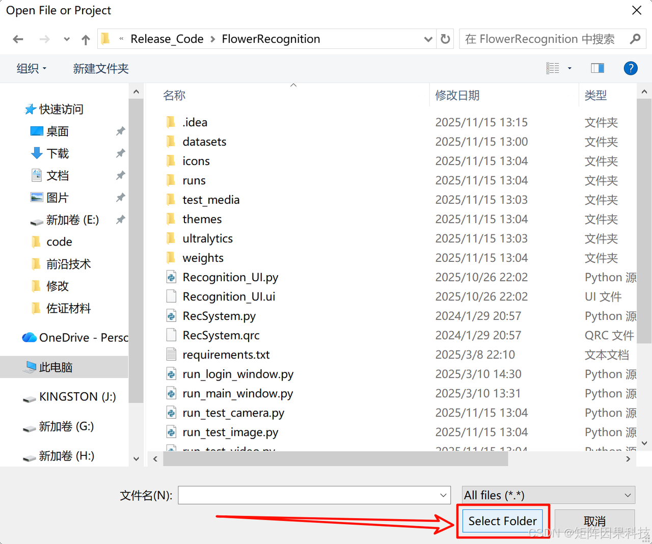 之后就会切换到那个文件夹中,这时候再选“Select Folder”:
