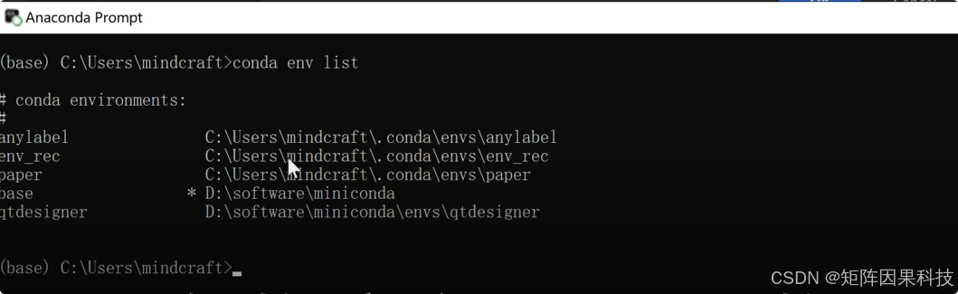 不知道安装位置?可在 Anaconda Prompt 执行 conda env list,其中 base 行的路径即可指向 Conda 所在目录:
