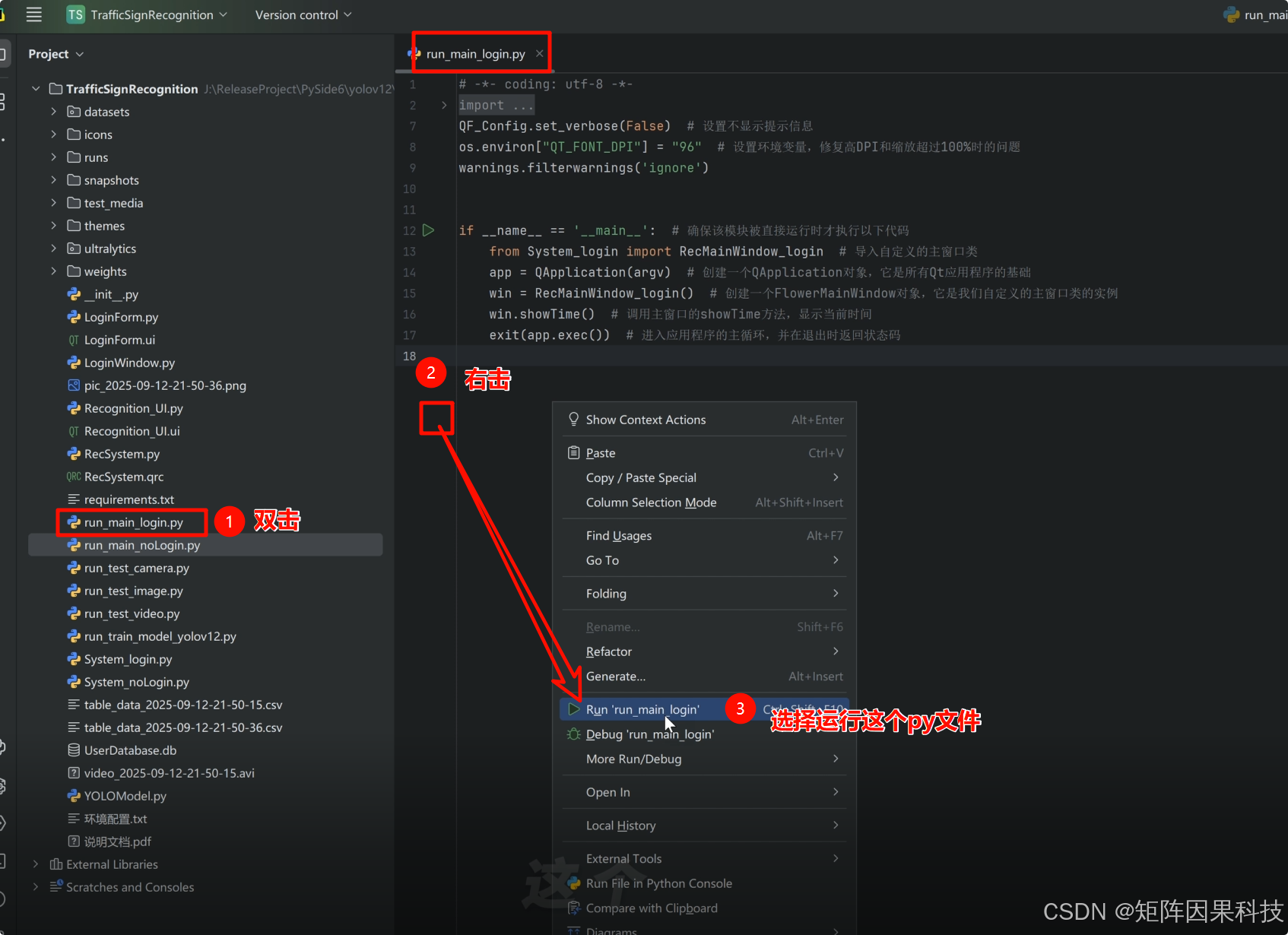 run_main_login.py; - 在编辑器内右键空白处,选择【Run 'run_main_login.py'】;