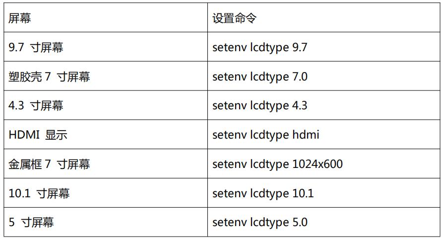 如上表所示,用户根据实际屏幕,选用“设置命令”。例如作者是 9.7 寸屏,则使用“setenv lcdtype 9.7”,然后“saveenv”保存参数,如下图所示。