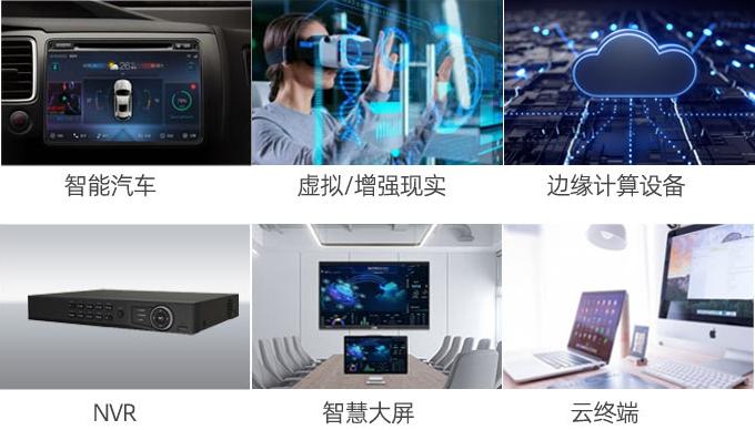 广泛用于PC、边缘计算设备、云服务器、智慧大屏、安防、NVR、虚拟/增强现实等,可满足不同行业的产品需求。