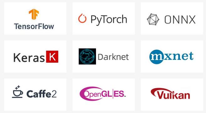 支持INT4/INT8/INT16/FP16混合运算。支持深度学习框架,基于TensorFlow、MXNet、PyTorch、Caffe等一系列框架的网络模型,可以轻松转换,赋能各类AI场景。