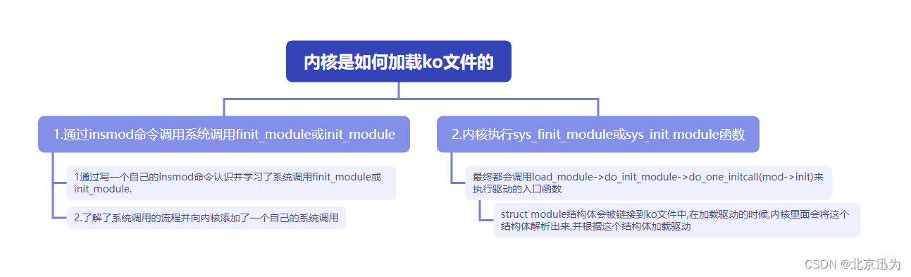 SYSCALL_DEFINE3(finit_module, int, fd, const char __user *, uargs, int, flags)或SYSCALL_DEFINE3(init_module, void __user *, umod, unsigned long, len, const char __user *, uargs)。这些函数最终都会调用load_module函数,而在load_module函数中,会通过do_one_initcall(mod->init)来执行驱动程序的入口函数。
