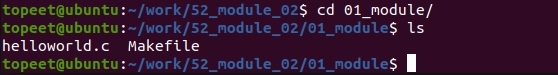 对于Makefile的内容注释已在上图添加,保存退出之后,来到存放helloworld.c和Makefile文件目录下,如下图(图5-1)所示: