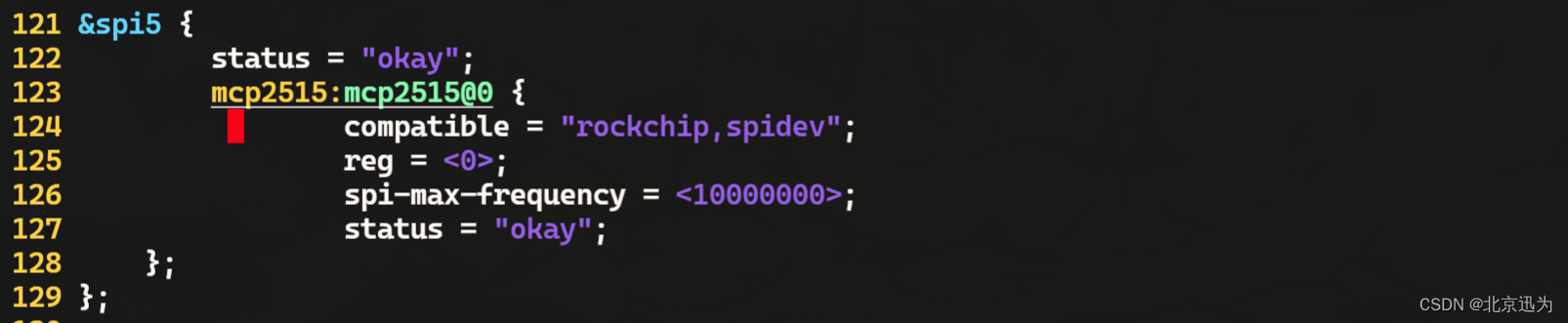 最后修改之前编写的mcp2515节点,修改之后的内容如下所示: