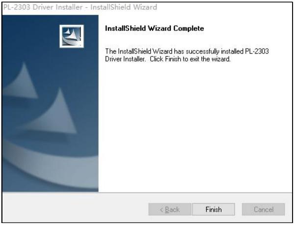 5)如下图,提示驱动安装已经完成,单击“Finish”,结束‘USB 转串口’驱动安装。