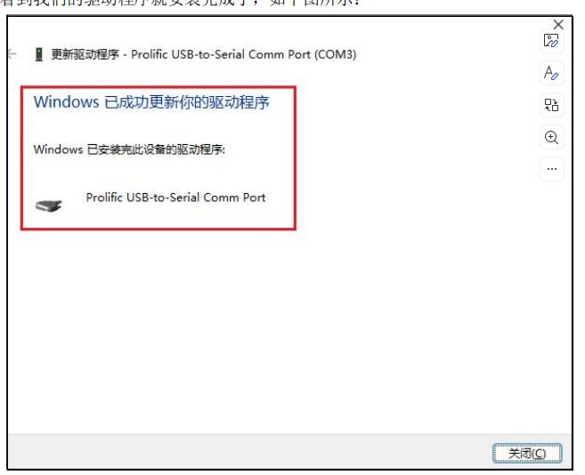 可以看到我们的驱动程序就安装完成了,如下图所示: