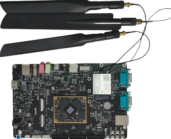 iTOP-3588 开发板上预留了一个 4G /5G 接口,可以连接迅为提供的 EM05-CE 模块(全网通 4G 模块)。