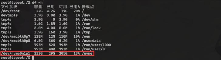 输入以下命令挂载固态,将固态硬盘挂载到/nvme/目录下,挂载目录可以随意指定,如下图所示: