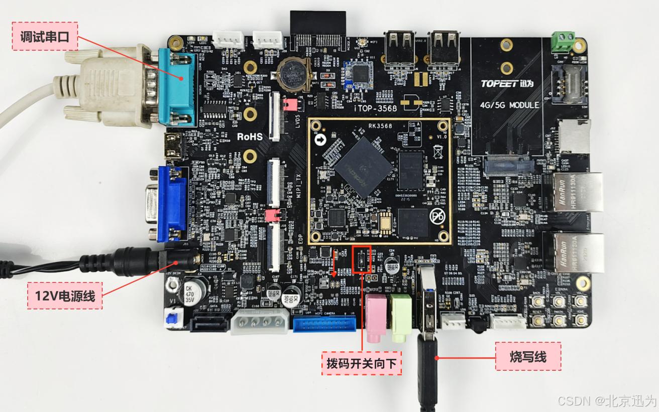 参考《01_【北京迅为】itop-rk3568开发板快速启动手册【底板v1.7版】v1.0.pdf》手册进行硬件连接。