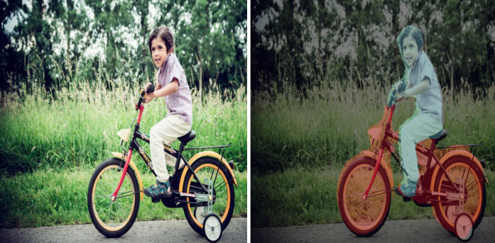 可以看到人和自行车已经被不同的颜色进行了分割,证明模型推理成功。