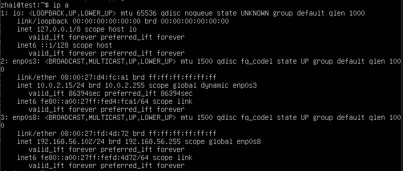 ip a命令查看地址配置正确