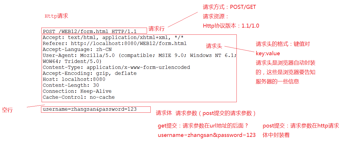 HttpServletRequest对象代表客户端的请求,当客户端通过HTTP协议访问服务器时,HTTP请求头中的所有信息都封装在这个对象中,开发人员通过这个对象的方法,可以获得客户这些信息。- 注意只有post请求才会有请求体,而get请求直接在地址中跟在?后面,多个参数使用&隔开。