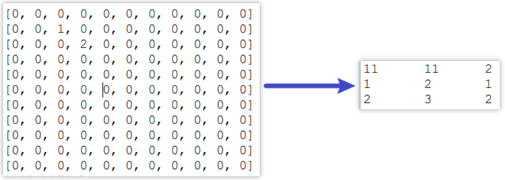 | 1 | 原始数组有11行 | 原始数组有11列 | 有效数据有2个 |