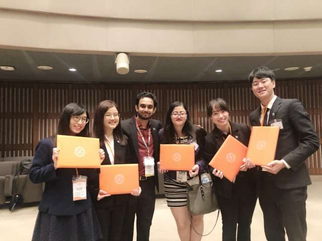 最后评委会主席宣布我们组第一的时候,我们都以为听错了,拿到证书以后,坐下来就开始哭。最后一天韩国的Young专门去楼下买了联合国的纪念胸章,每人一个,