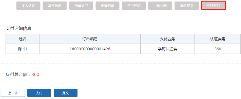 申请人在线支付认证费用可通过微信或支付宝方式支付,替换通过“银联在线”支付的方式。如申请者本人没有微信或支付宝账户,建议由亲友代付。
