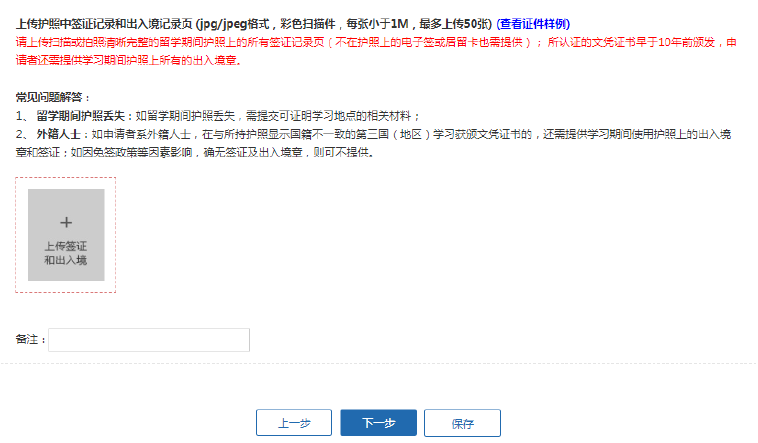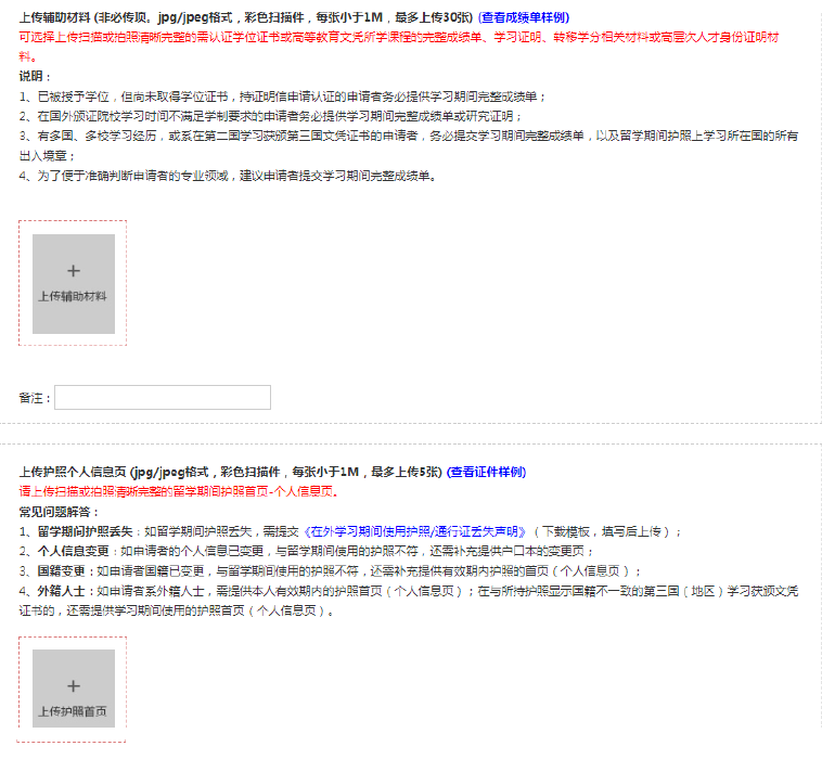 注意红色字体提示信息并按照要求上传相应材料。(点击放大)
