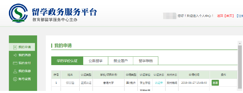 申请人可登陆认证系统,点击“个人中心”,查看其认证申请的认证状态,也可在个人中心点击“查看”,查看此份申请详情和预计完成时间。如在认证过程中,申请人需补充材料或收到重要通知,可登陆系统查看到需补交的材料内容或通知文字,并根据要求在线上或线下完成材料的补交。