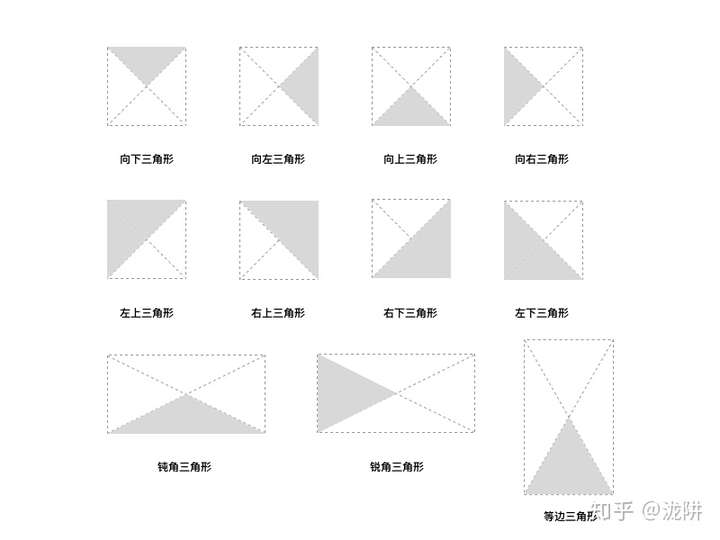 利用这一原理我们可以将 DOM 的高和宽设置为 0 像素,通过设置边框的颜色透明来画出不同的三角形,当然也可以来设置 border 的宽度来画出不同角度的三角形: