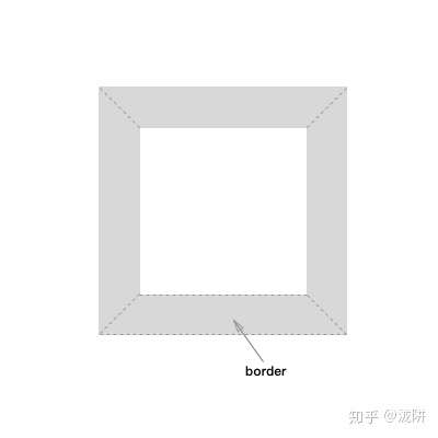 一条边框在和模型中其实并不是一条线,如果我们将边框设置得足够大,并且设置不同的颜色,我们就很容易看到边框的本质,从下图很容易可以看出其事 border 在一个正方形 DOM 上其实是一个梯形: