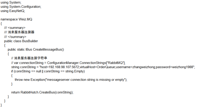 增加BusBuilder.cs管道创建类,主要负责链接RabbitMQ。