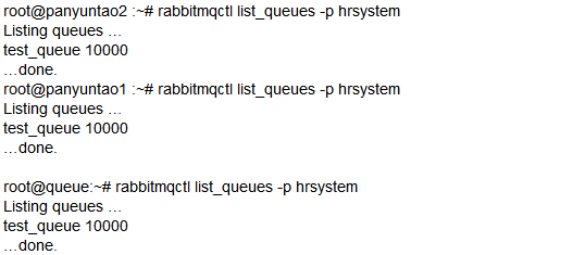 queue 如果要使panyuntao1或panyuntao2在集群里也是磁盘节点,join_cluster 命令去掉--ram参数即可。