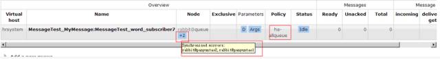 使用RabbitMQ管理端可以看到集群镜像模式中对列状态