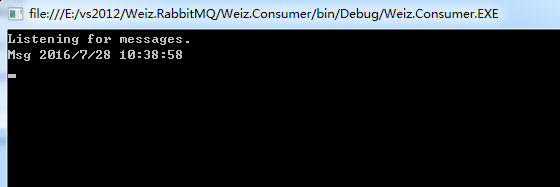 (1)启动 Weiz.Consumer (消费者),启动消费者,会自动在RabbitMQ 服务器上创建相关的exchange 和 queue 。