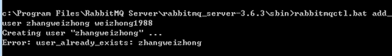 输入:rabbitmqctl.bat add_user zhangweizhong weizhong1988