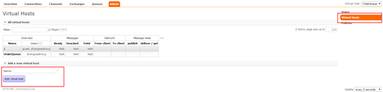 创建vhosts,在admin页面,点击右侧Virtual Hosts: