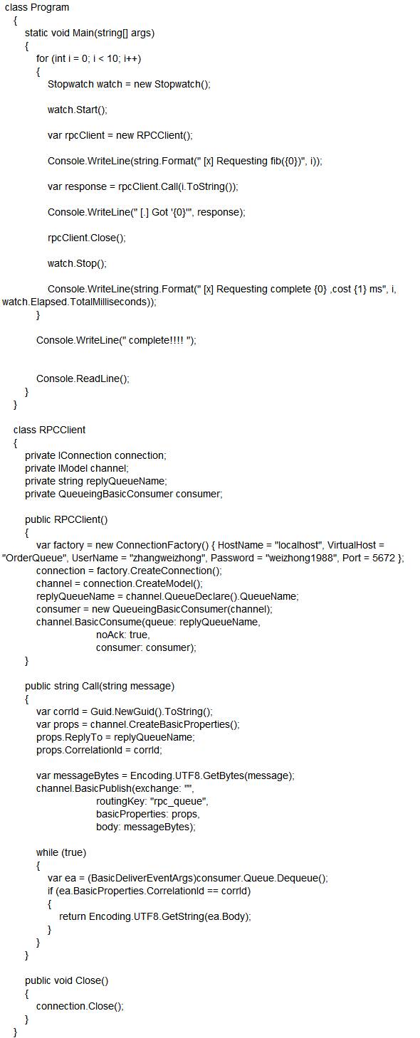demo示例下载(https://files.cnblogs.com/files/zhangweizhong/Weiz.RabbitMQ.RPC.rar)