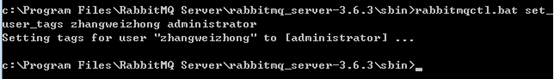 输入:rabbitmqctl.bat set_user_tags zhangweizhong administrator