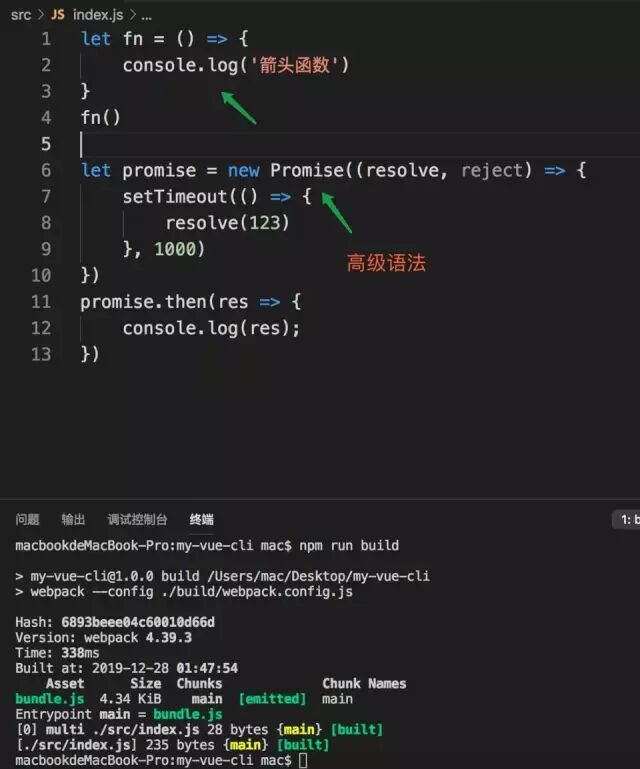 3. 在index.js中编写ES6+等高级语法