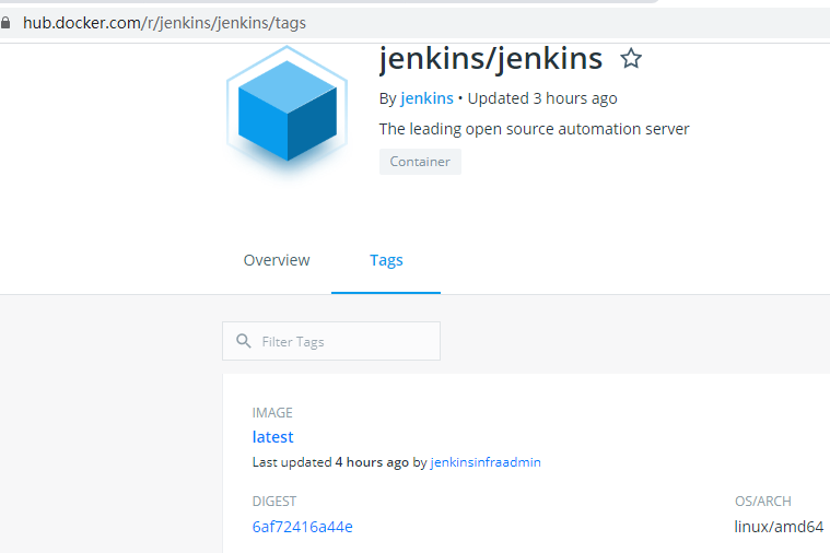 新建jenkins目录后,在https://hub.docker.com/r/jenkins/jenkins/tags中查找最新镜像