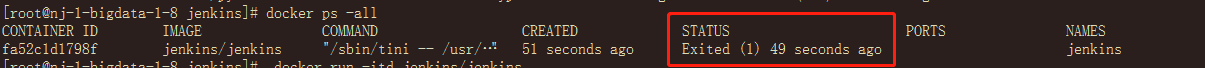 通过docker ps -all,发现秒退