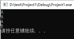 #include<iostream> using namespace std; class A { public: void print1() { cout << "A" << endl;; } virtual void print2() { cout << "A" << endl; } }; class B :public A{ public: void print1() { cout << "B" << endl; } virtual void print2() { cout << "B" << endl; } }; int main() { A*p; A*test1= new A(); B*test2 = new B(); p = test1; p->print1(); p->print2(); p = test2; p->print1(); p->print2(); system("pause"); return 0; }