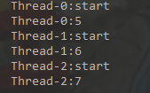 public class UseThreadLocal { static ThreadLocal<Integer> threadLaocl = new ThreadLocal<Integer>(){ @Override protected Integer initialValue() { return 5; } }; /** * 运行3个线程 */ public void StartThreadArray(){ Thread[] runs = new Thread[3]; for(int i=0;i<runs.length;i++){ runs[i]=new Thread(new TestThread(i)); } for(int i=0;i<runs.length;i++){ runs[i].start(); } } /** *类说明:测试线程,线程的工作是将ThreadLocal变量的值变化,并写回,看看线程之间是否会互相影响 */ public static class TestThread implements Runnable{ int id; public TestThread(int id){ this.id = id; } public void run() { System.out.println(Thread.currentThread().getName()+":start"); Integer s = threadLaocl.get();//获得变量的值 s = s+id; threadLaocl.set(s); System.out.println(Thread.currentThread().getName()+":" +threadLaocl.get()); //threadLaocl.remove(); } } public static void main(String[] args){ UseThreadLocal test = new UseThreadLocal(); test.StartThreadArray(); } }