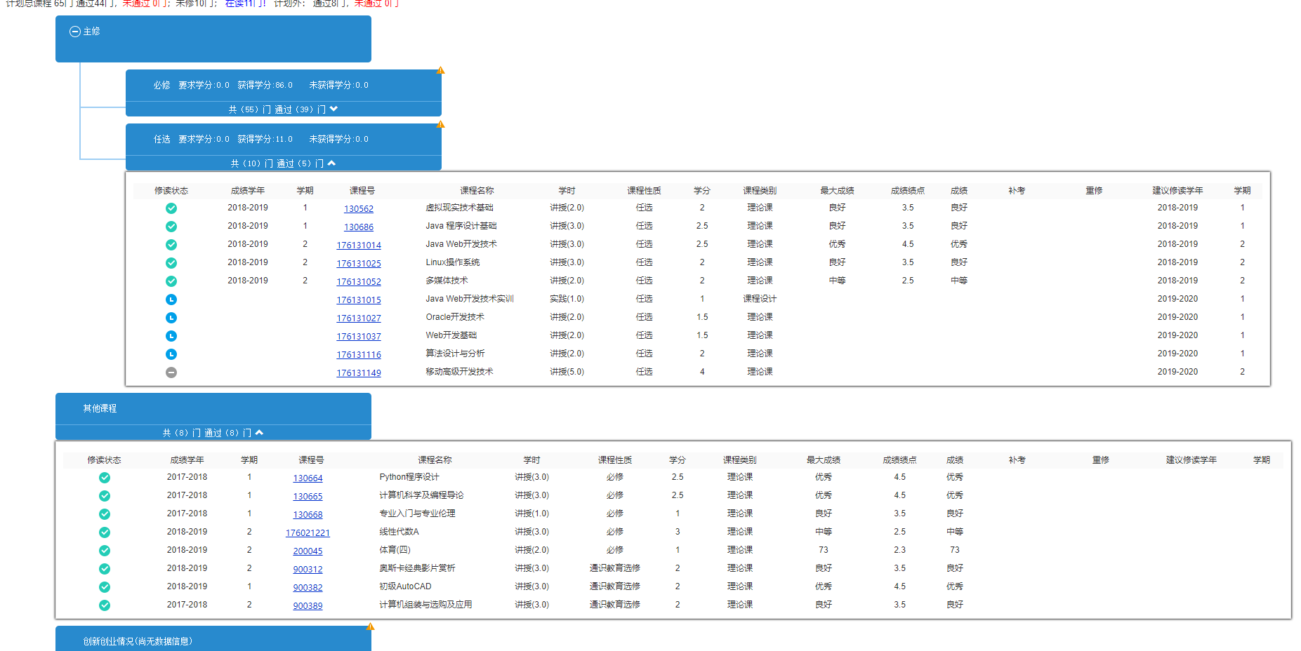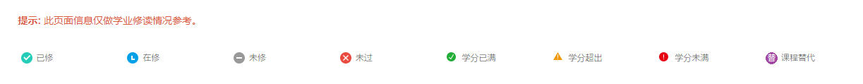 理由:界面符合惯例,方便用户(学生)发现自己哪些科目学分未修满