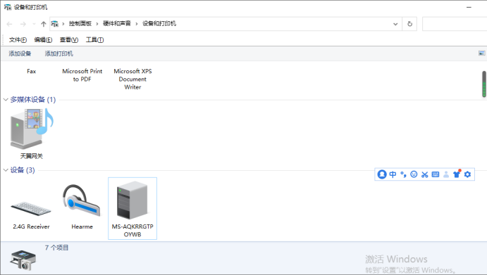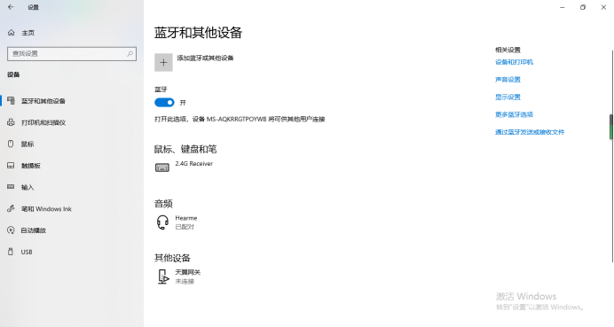 打开蓝牙和其他设备,点击设置按钮,设备和打印机按钮